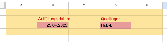 - In Spalte "{Lagercode}-Auffüllung" (z.b. L1003-Auffüllung) gewünschte Auffüllungen eintragen