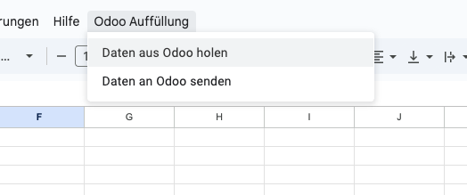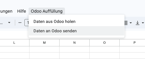 - Daten aus Odoo holen: Navigationsmenü oben > Odoo Auffüllung > Daten aus Odoo holen